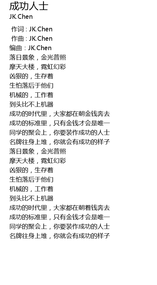 | [00:00.000] | 作词 : JK.Chen |