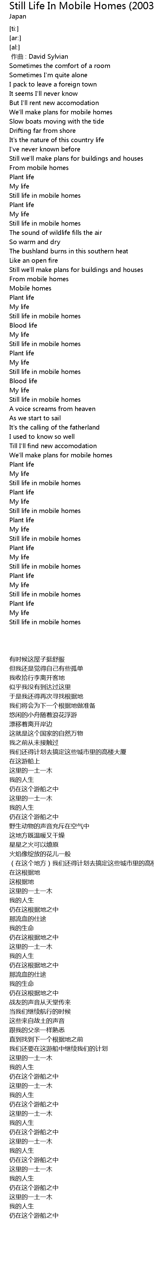 | [00:00.000] | 作曲 : David Sylvian |