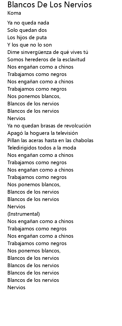 | Song | Blancos De Los Nervios |