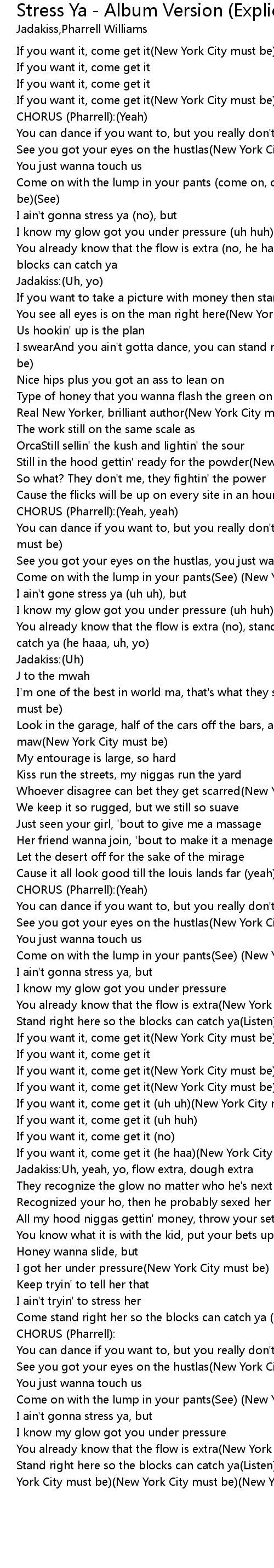 I ain't gonna stress ya, but |