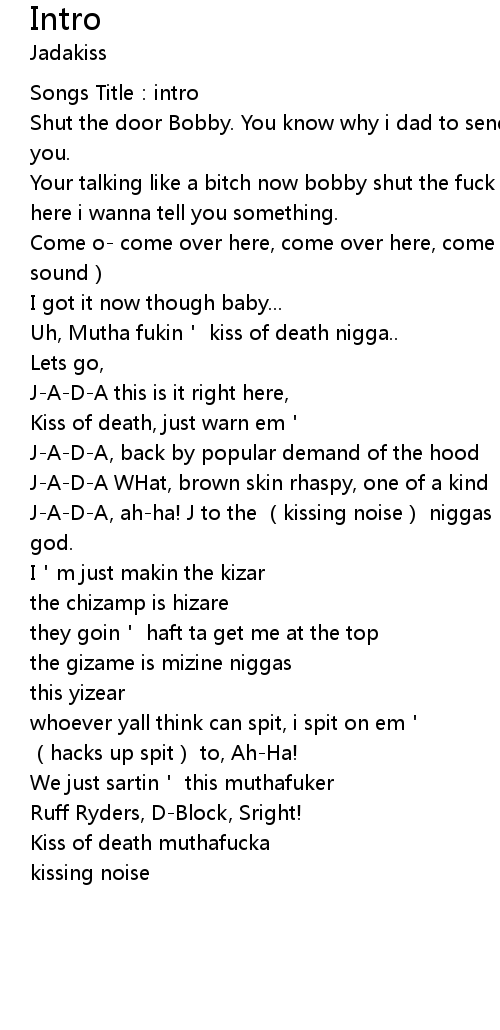 | [00:45.12] | J-A-D-A, ah-ha! J to the (kissing noise) niggas know the voice of god. |