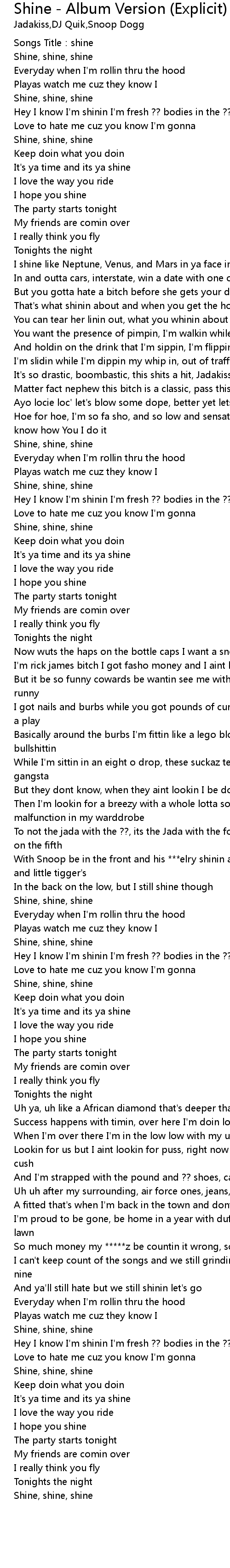 | Song | Shine - Album Version (Explicit) |