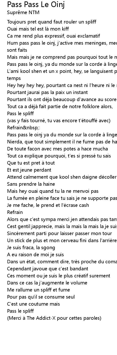 | Hum pass pass le oinj, j'active mes meninges, mec ca yest je lai, ouai les jeux sont faits | |