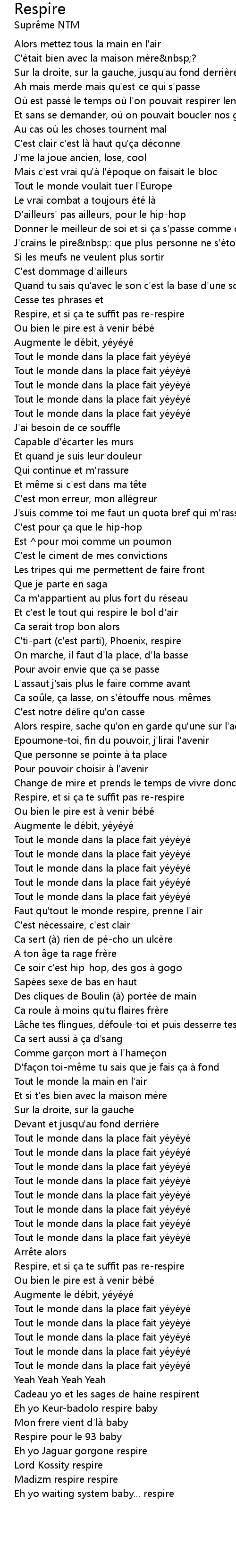 | Alors respire, sache qu' on en garde qu' une sur l' adverse | |