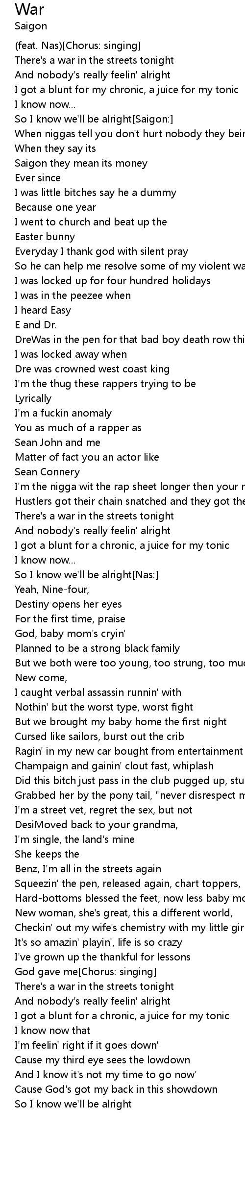So I know we'll be alright[Saigon:] |