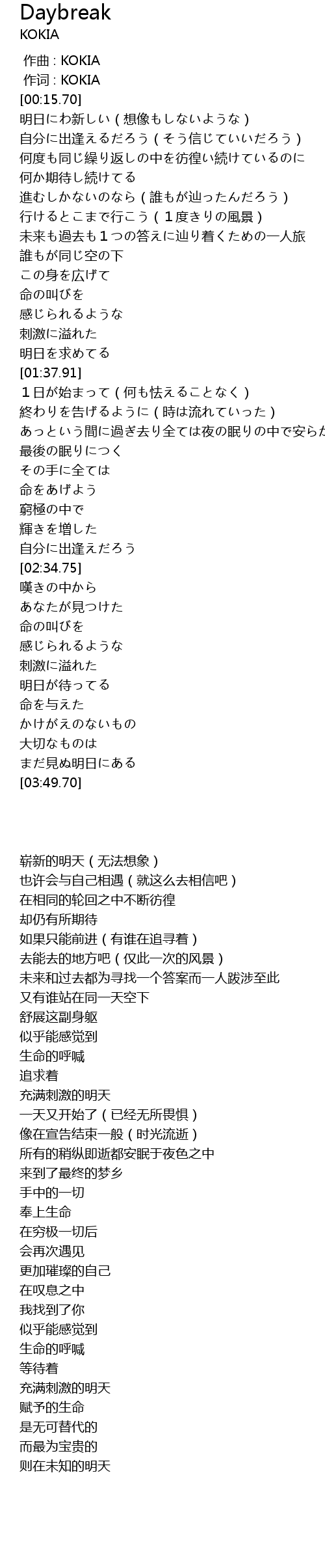 | [01:43.18] | 1日が始まって(何も怯えることなく) |