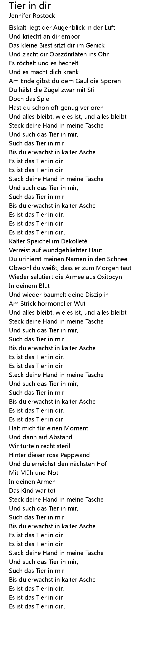 | Und alles bleibt, wie es ist, und alles bleibt | |