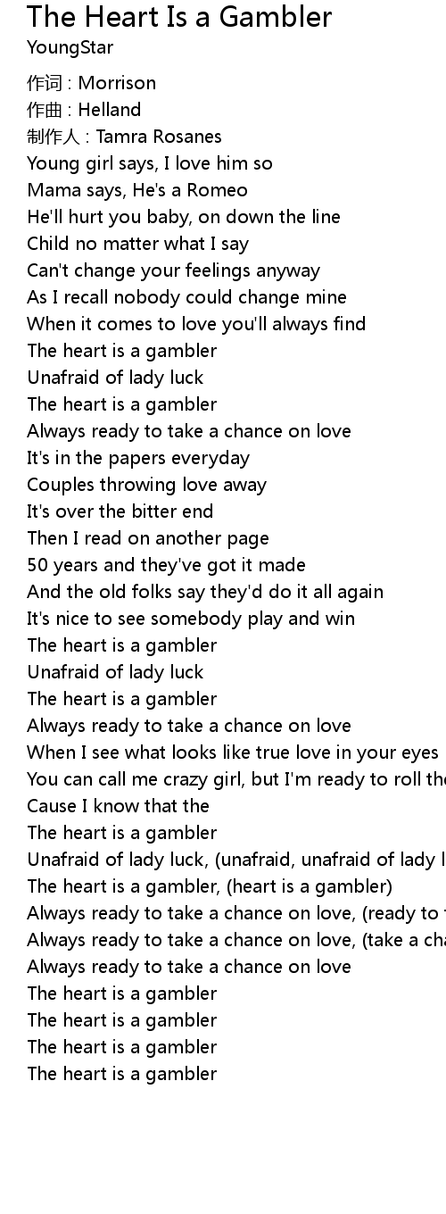 | Unafraid of lady luck, unafraid, unafraid of lady luck | |
