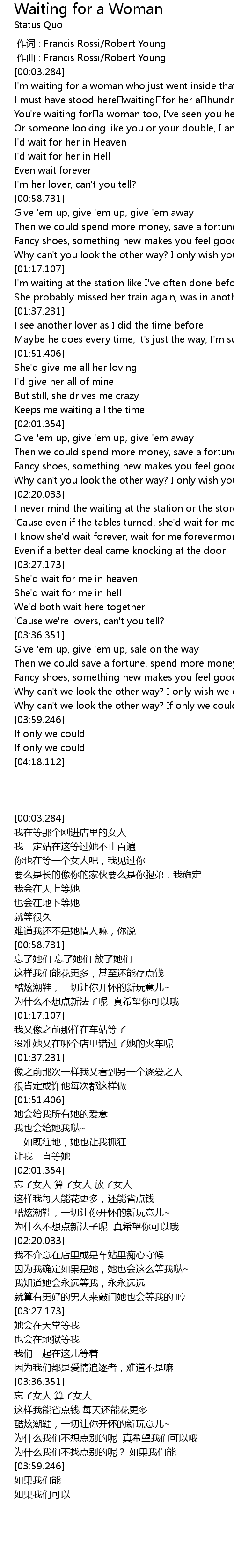 | [00:00.000] | 作词 : Francis Rossi/Robert Young |