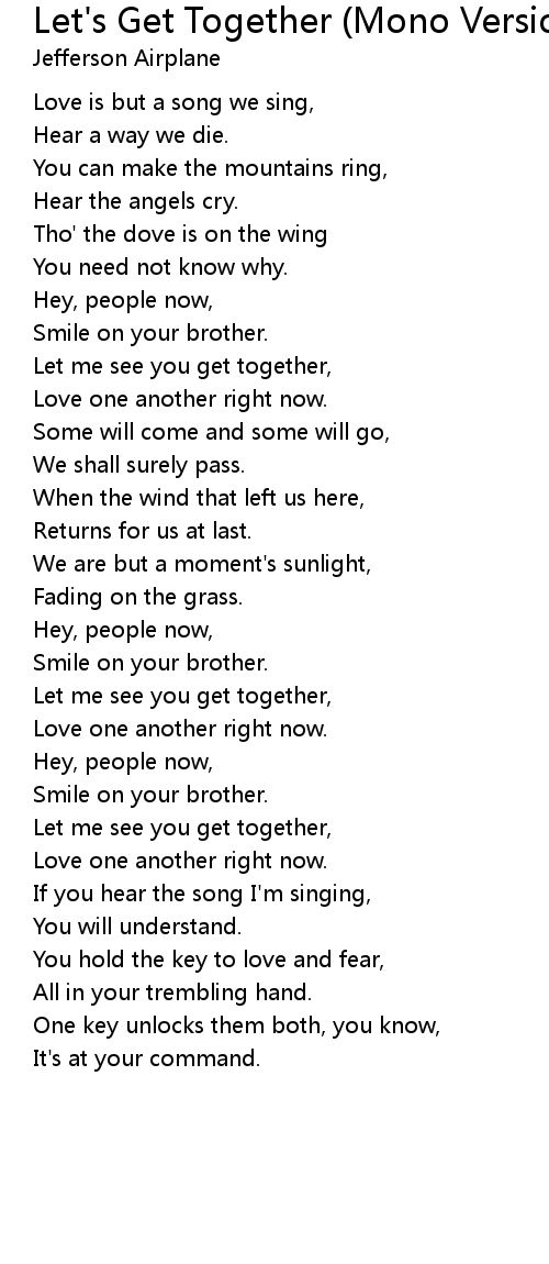 Let me see you get together, |