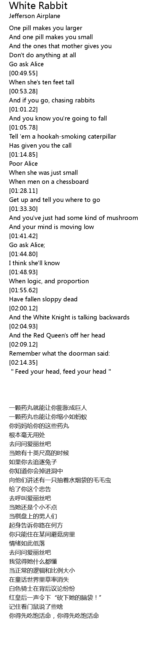 | [01:07.22] | Tell 'em a hookah-smoking caterpillar |
