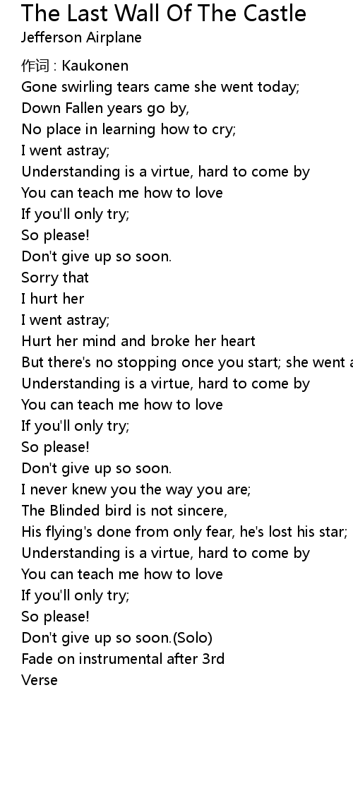 | Song | The Last Wall Of The Castle |