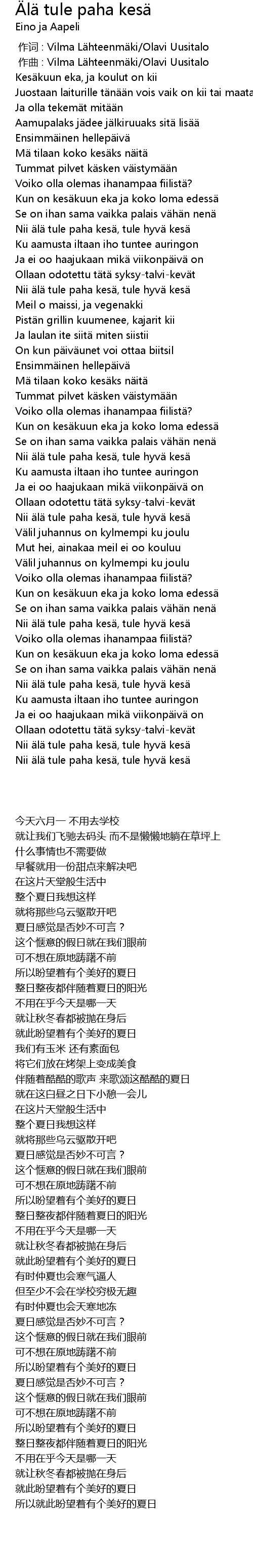 | [02:38.60] | Nii älä tule paha kesä, tule hyvä kesä |