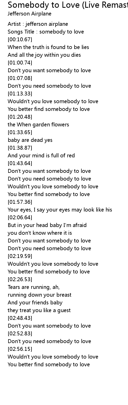 | [01:44.27] | Don't you want somebody to love |