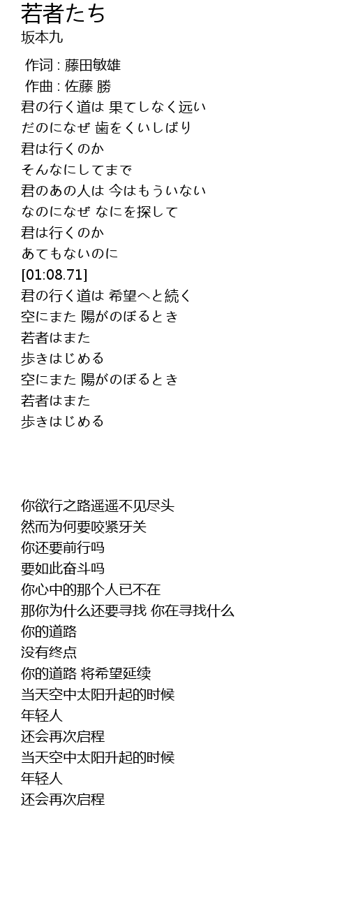 | [00:12.12] | 君の行く道は 果てしなく远い |