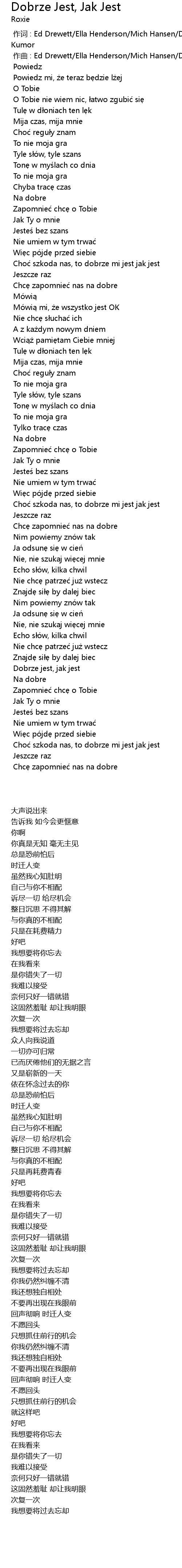 | [00:50.512] | Cho szkoda nas, to dobrze mi jest jak jest |