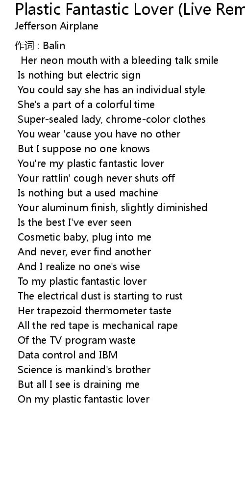 | Song | Plastic Fantastic Lover (Live Remastered) - Remastered 2004 |
