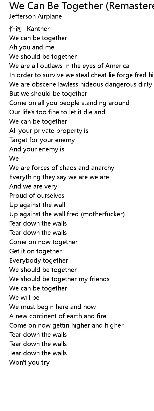 | Song | We Can Be Together (Remastered) - Remastered 2004 |