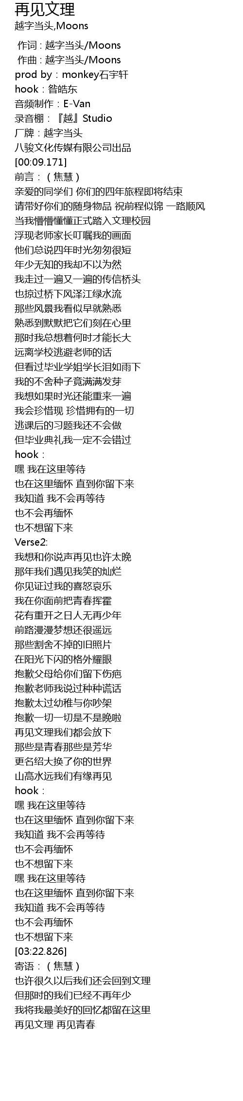 | [03:42.077] | 再见文理 再见青春 |