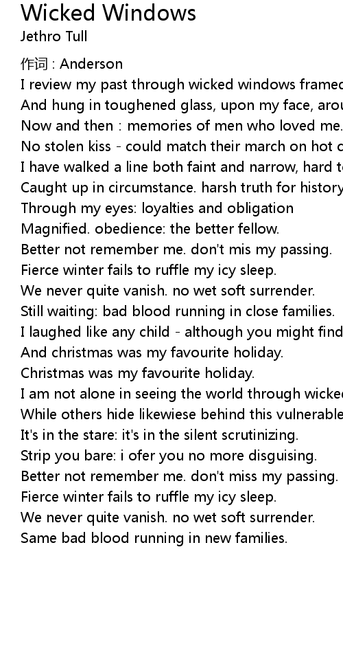 | Song | Wicked Windows |