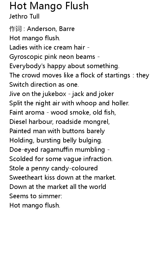 | Song | Hot Mango Flush |