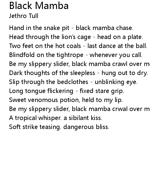 Be my slippery slider, black mamba crawl over me. |