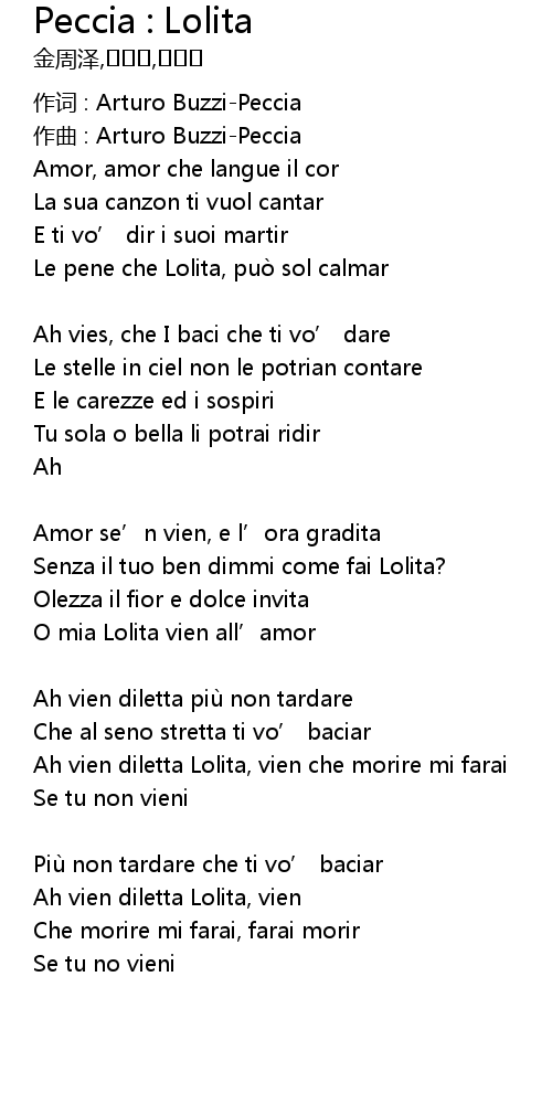 | Ah vien diletta Lolita, vien che morire mi farai | |