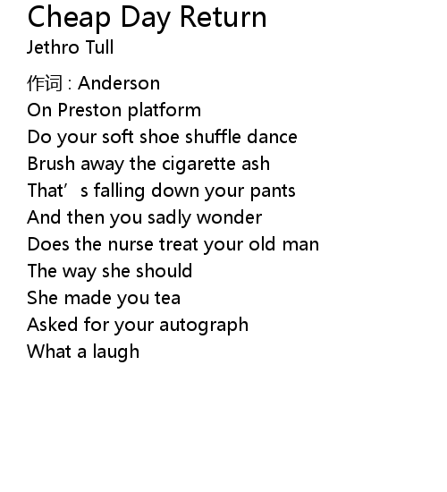 | Song | Cheap Day Return |