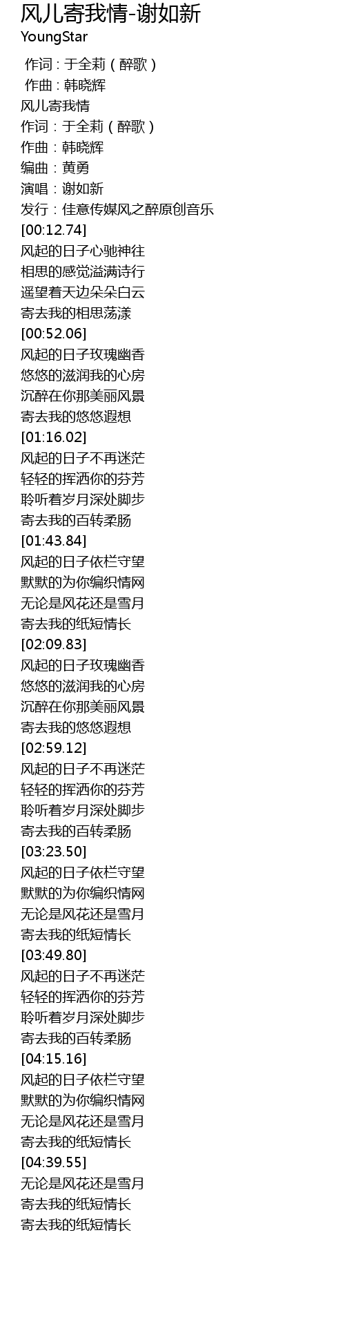 [00:03.34] 风儿寄我情