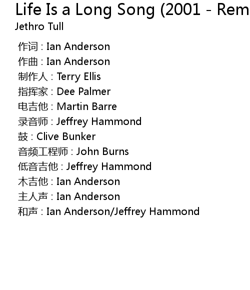 | [00:00.000] | hé shēng : Ian Anderson Jeffrey Hammond |