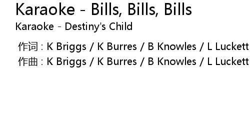 | [00:00.000] | 作词 : K Briggs / K Burres / B Knowles / L Luckett / K Rowland |