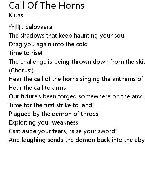 | Hear the call of the horns singing the anthems of war, | |