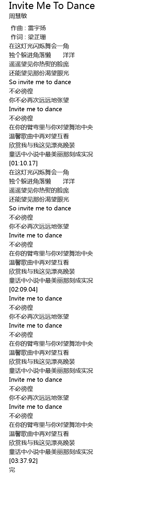 | [01:16.21] | 在这灯光闪烁舞会一角 |
