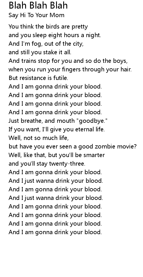 And I just wanna drink your blood. |