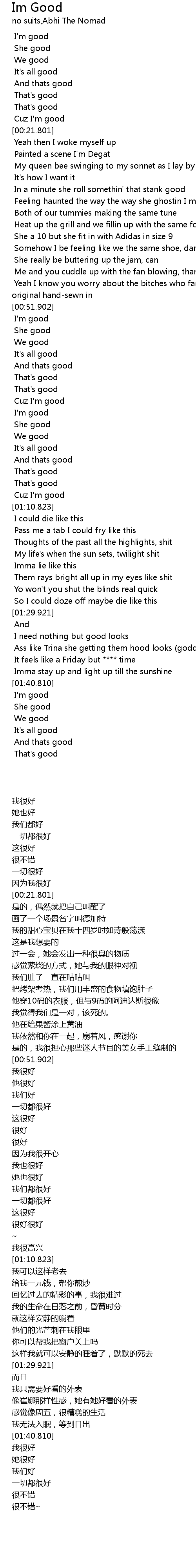 | [00:47.384] | Yeah I know you worry about the bitches who fan shows but you is original hand-sewn in |