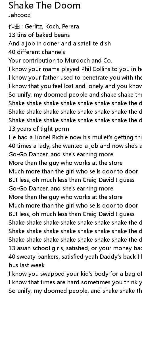 | So unify, my doomed people and shake shake the doom | |