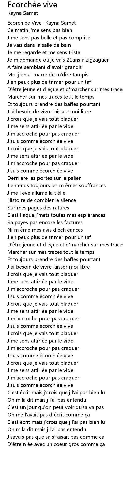 | [02:51.472] | J'suis comme écorch ée vive |