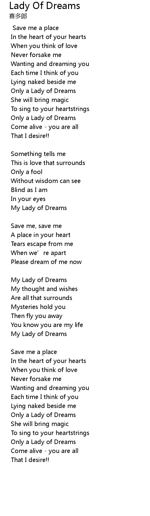 | Song | Lady Of Dreams |