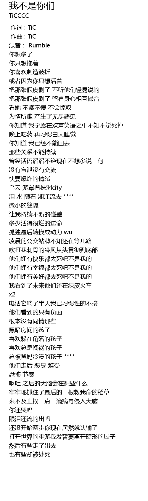 | [00:00.000] | 作词 : TiC |