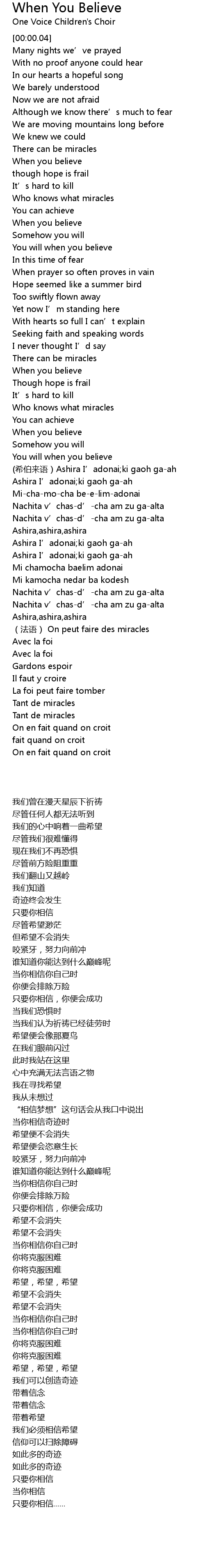 | [03:50.73] | fǎ yǔ On peut faire des miracles |