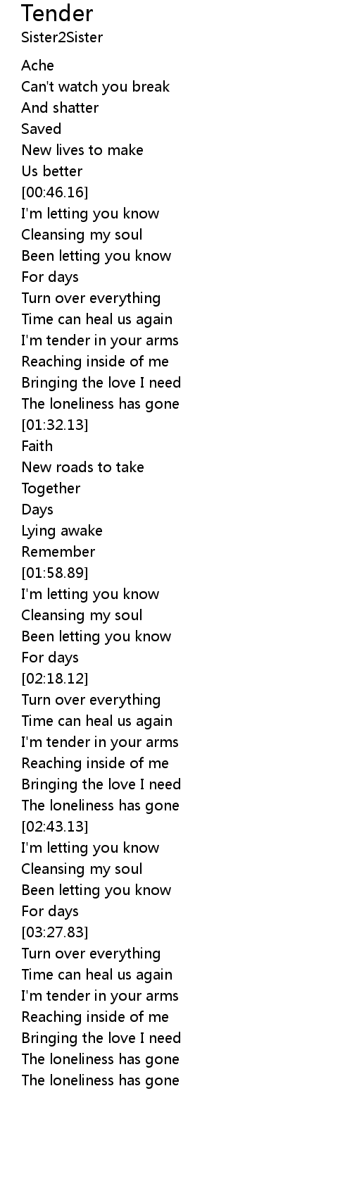 I'm tender in your arms |