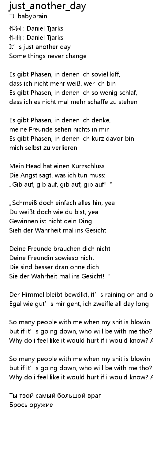 | Egal wie gut' s mir geht, ich zweifle all day long | |