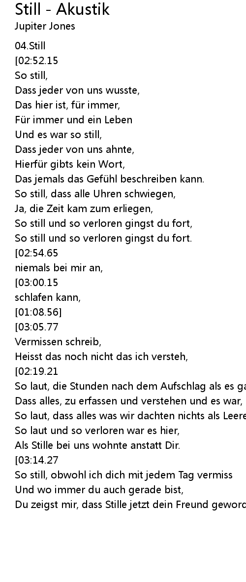 | [02:34.65] | So still, obwohl ich dich mit jedem Tag vermiss |