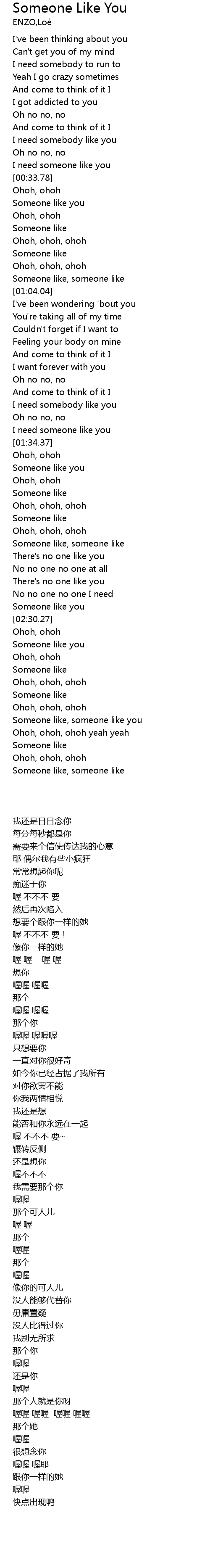 | [02:02.82] | Someone like, someone like |