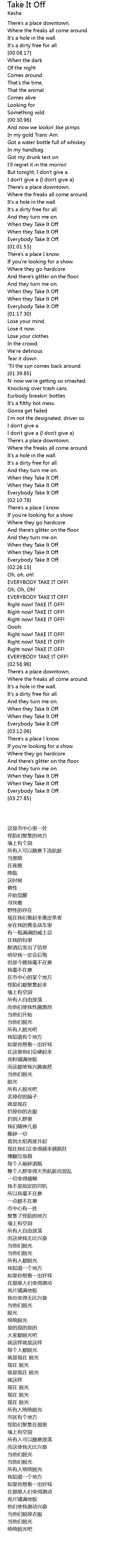 | [00:59.96] | Everybody Take It Off. |