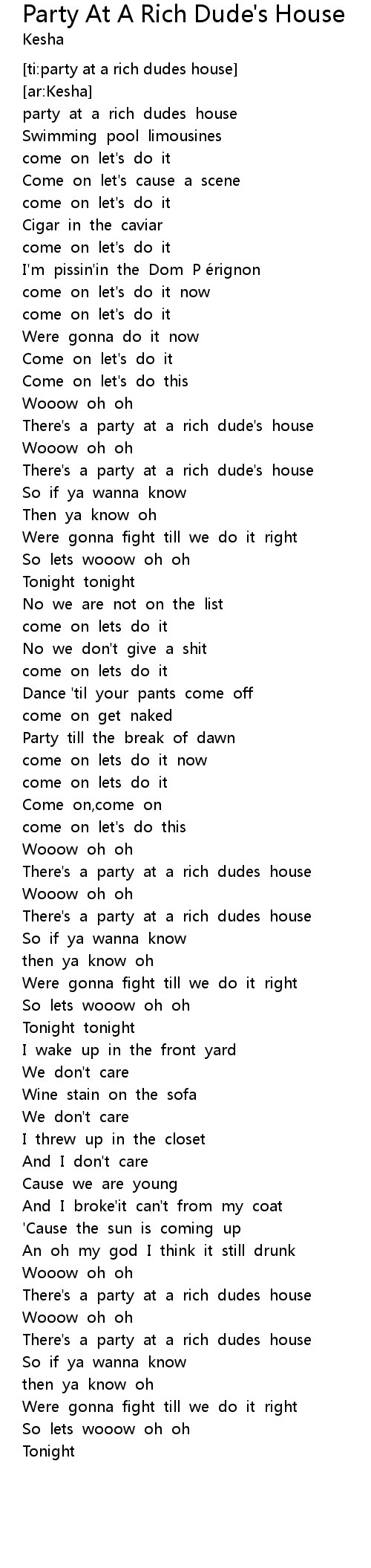 | [00:45.204] | There' s a party at a rich dude' s house |