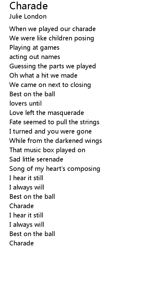 When we played our charade |