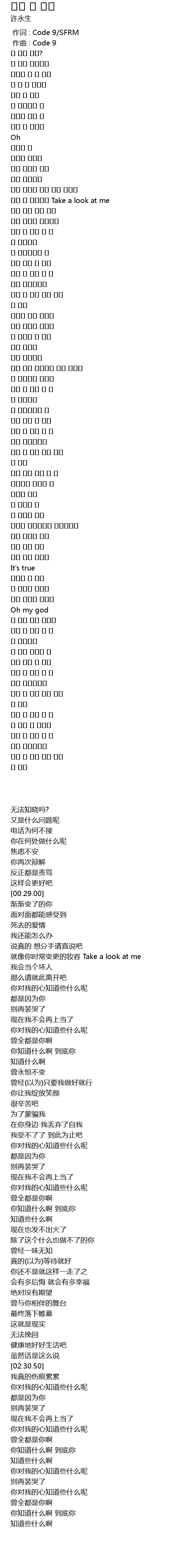 | [00:01.000] | zuò qǔ : Code 9 |