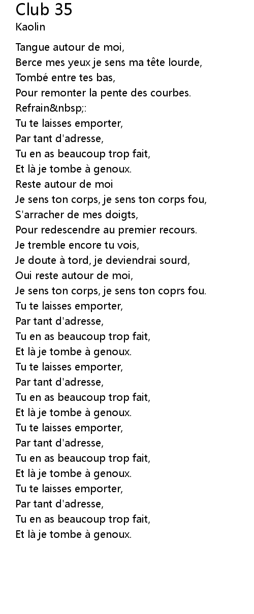 | Je sens ton corps, je sens ton coprs fou. | |