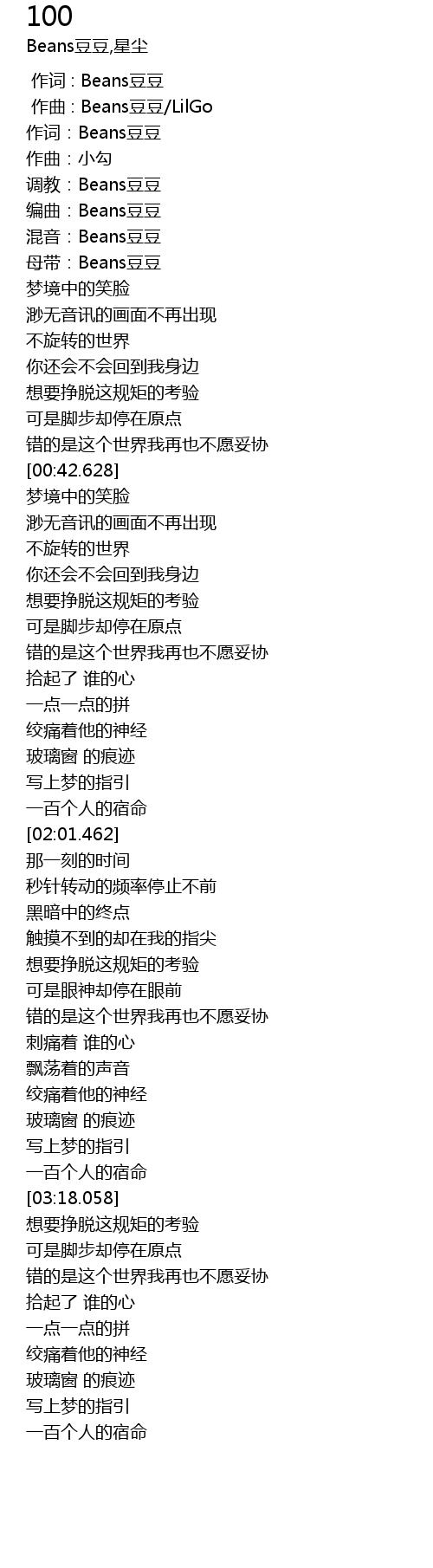 | [00:00.000] | 作词 : Beans豆豆 |